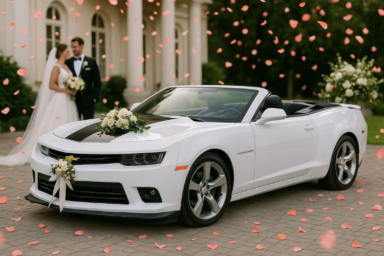 Per un matrimonio di classe dal gusto moderno, proponiamo auto cabriolet di lusso come Chevrolet Camaro, Ford Mustang, Audi TT, Mercedes SLK, Porsche Cayman, Maserati o Bentley GT: modelli esclusivi per un arrivo da veri protagonisti
