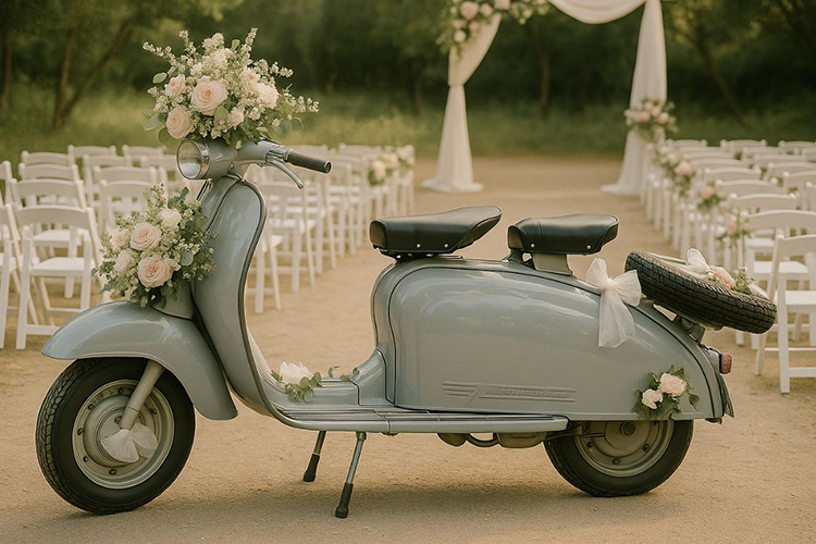 Per chi desidera un tocco fuori dagli schemi, offriamo la Lambretta LI 125: una moto d’epoca iconica, perfetta per chi ama distinguersi con stile. Un dettaglio vintage che rende il matrimonio originale, elegante e decisamente indimenticabile.